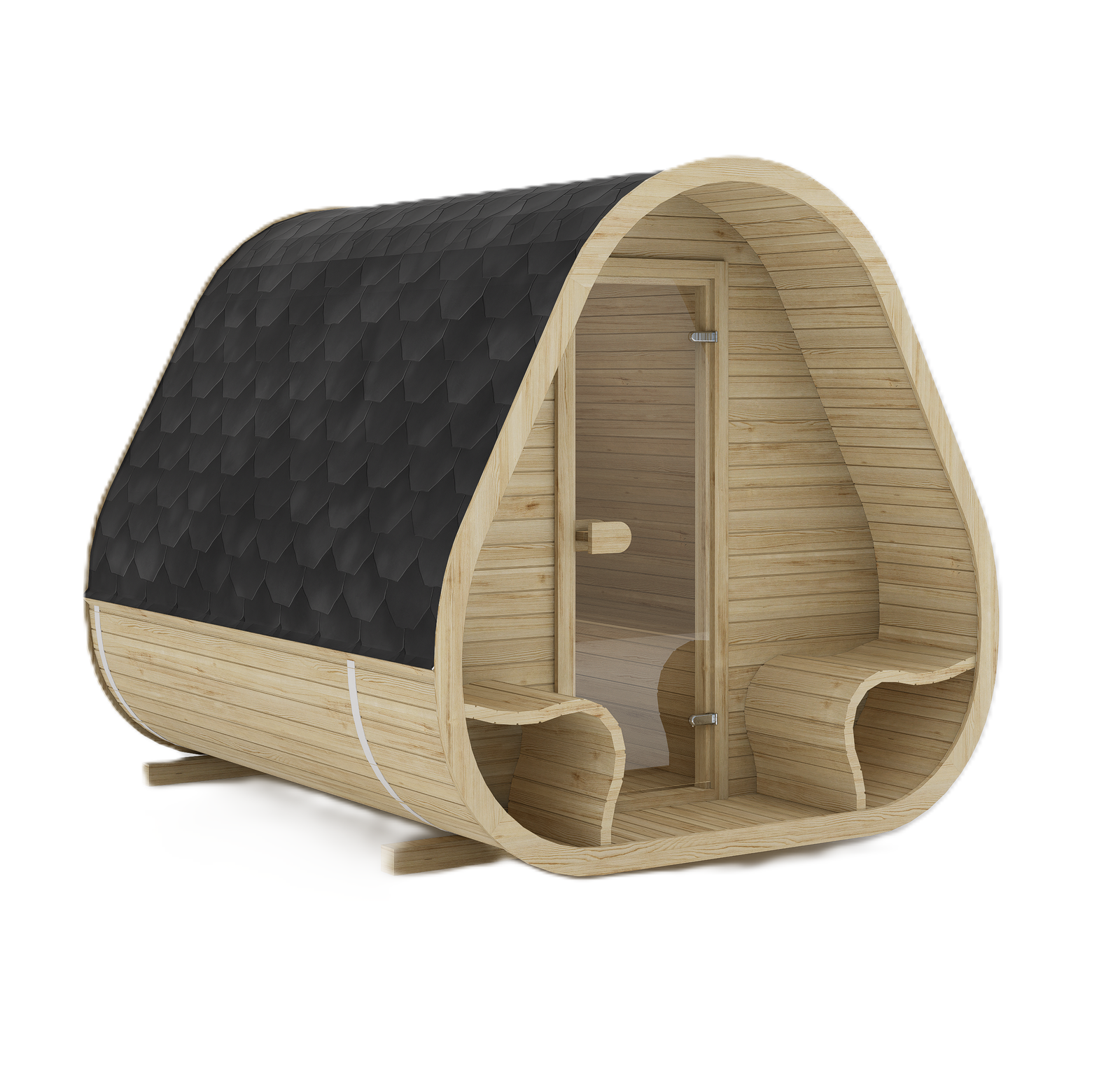 Its arched structure is not only visually striking but also functional, promoting excellent heat circulation and fast warm-up times. Whether installed in a private garden, terrace, or wellness area, the Nordic Arc™ offers a calm, immersive sauna experience without unnecessary bulk.