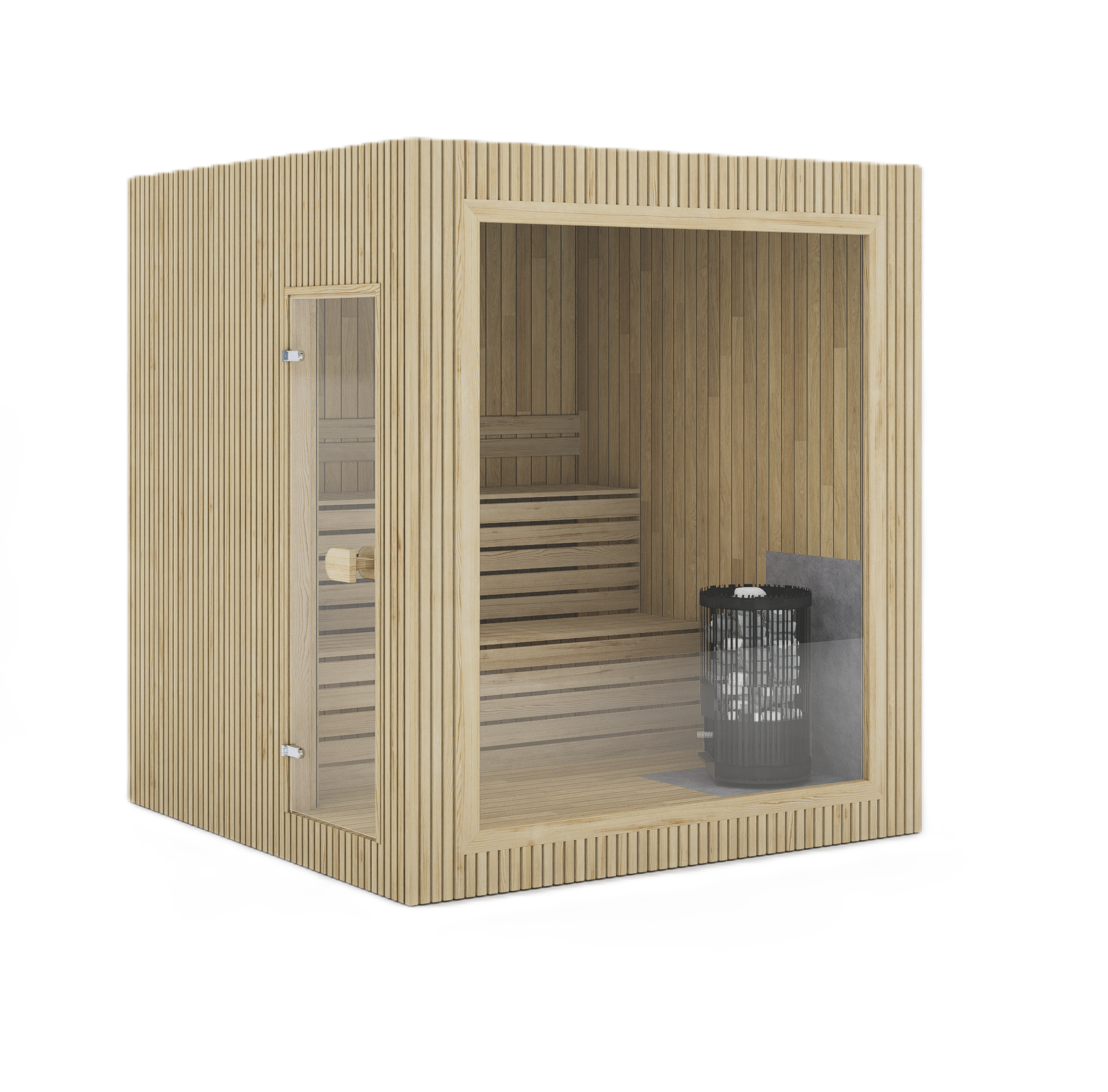 The TimberIN Nordic Cube™ collection is designed for maximum flexibility. Customers can choose wood type, bench materials, insulation level, door placement, and colour finishes.